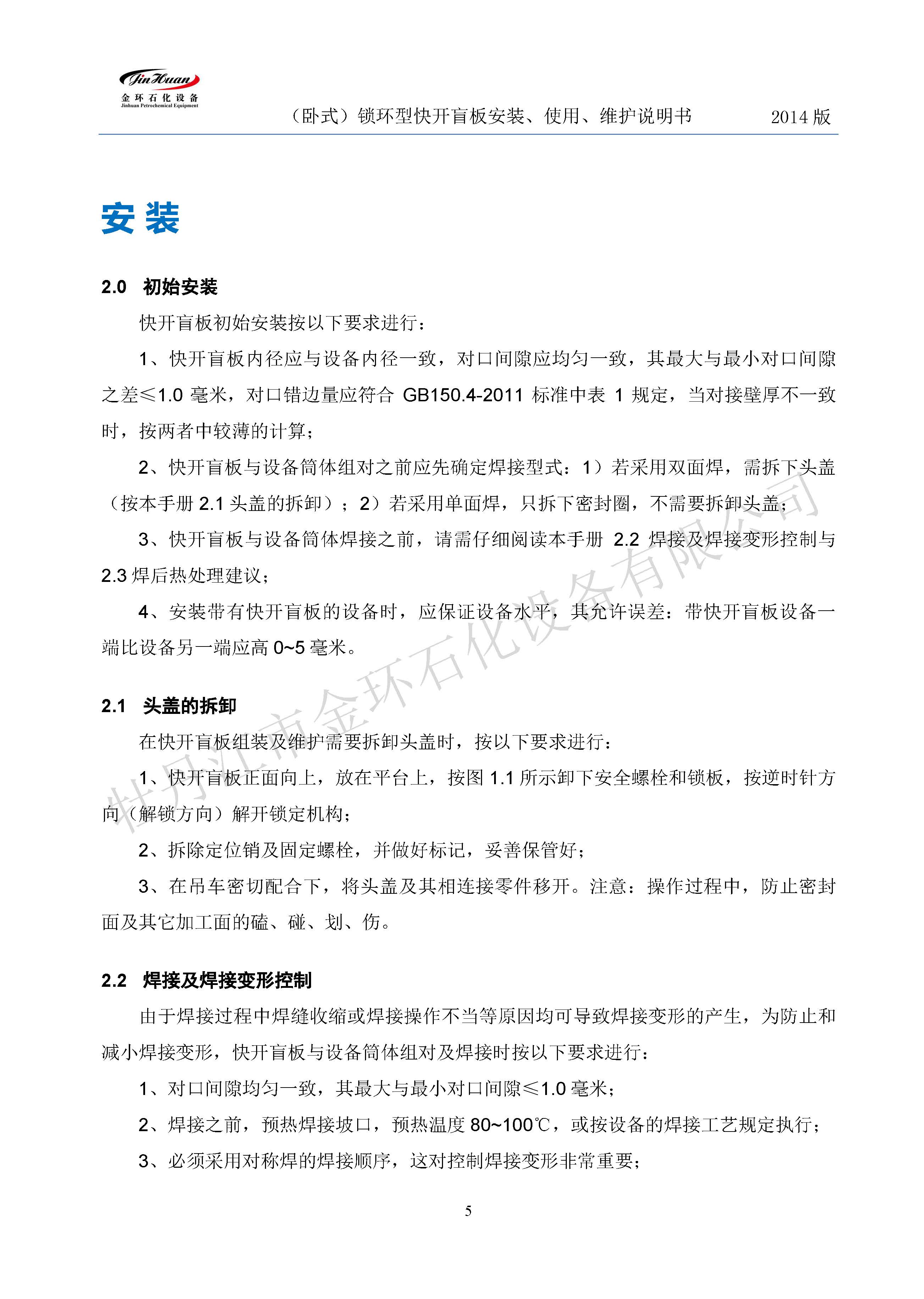 鎖環(huán)臥式快開(kāi)盲板說(shuō)明書(shū)