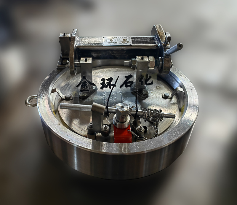 快開盲板是用于壓力管道或壓力容器的圓形開口上的一種機(jī)械裝置。一般由筒體法蘭、頭蓋、勾圈或卡箍、密封圈、安全聯(lián)鎖機(jī)構(gòu)、開閉機(jī)構(gòu)、轉(zhuǎn)臂及短節(jié)(需要時)等部件構(gòu)成。